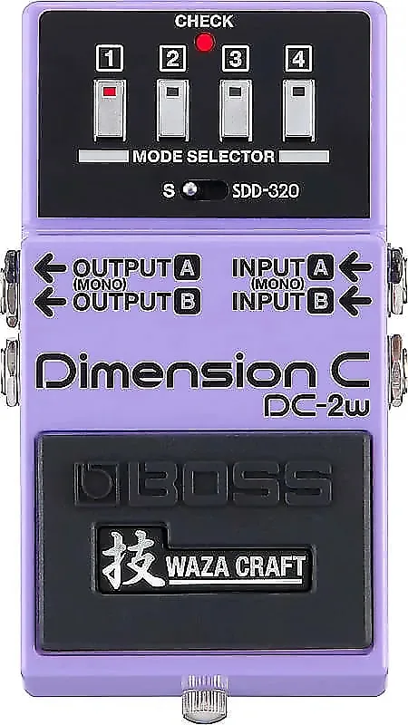 Like the original Dimension pedals, the DC-2W features four buttons that offer increasing levels of chorus. However, the DC-2W’s electronic switches enable musicians to press multiple buttons at once for different variations, resulting in 20 spatial sounds across the S and SDD-320 modes. The S mode reproduces the Dimension C’s analog circuitry for lush, retro chorus tones. The SDD-320 mode emulates the revered Dimension D studio rack unit used on countless hit records.