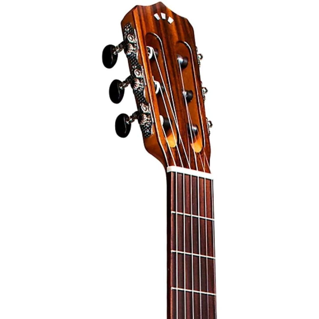 Part of Córdoba’s Fusion Series, the 12 Natural is Córdoba’s entry-level crossover guitar featuring a comfortable, slim steel-string style neck (48 mm nut width) with radiused fingerboard. A solid Canadian cedar top is paired with mahogany back and sides. As the name suggests, the 12 Natural has 12 frets to the body, allowing the bridge to sit further back on the soundboard, where resonance is optimized for a large sound with long sustain. Thoughtful finishing touches such as a hand-inlaid wooden rosette, 3-ply maple and ebony top purfling, and high gloss polyurethane finish makes this Fusion model both beautiful and practical. Plug in and play with the built-in Fishman Presys preamp.