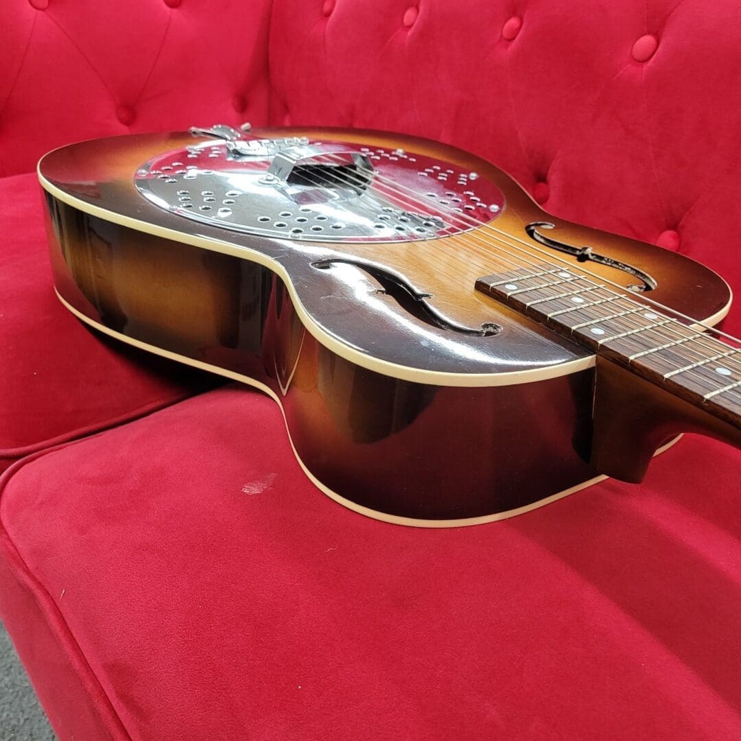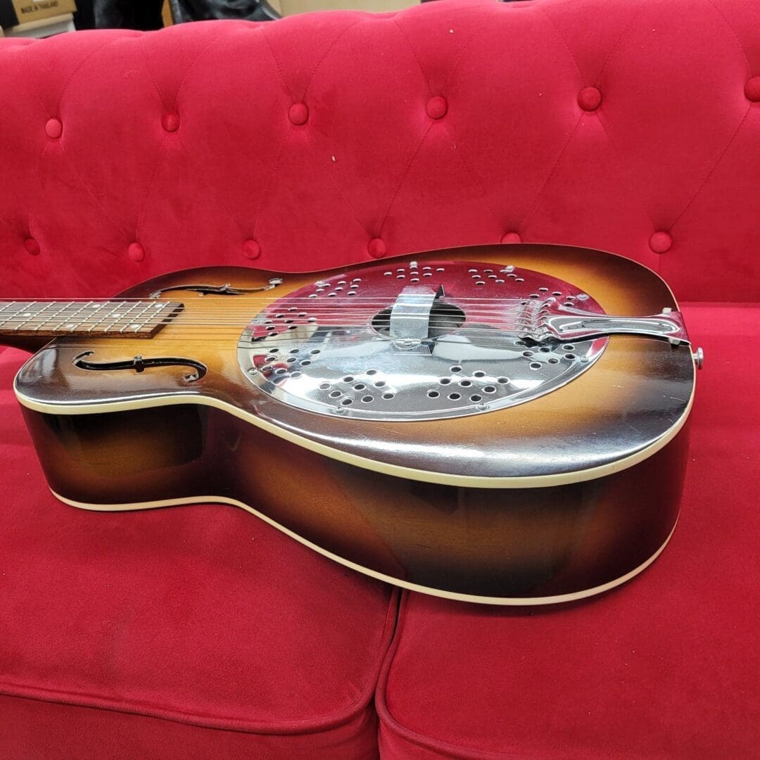 Up for sale is a Dobro DW90 Bottleneck Round Neck Resonator Guitar in a classic Vintage Burst finish. This is a purpose-built slide machine, professionally set up for bottleneck playing and currently tuned to open D—ready to deliver that rich, gritty resonator tone right out of the case.