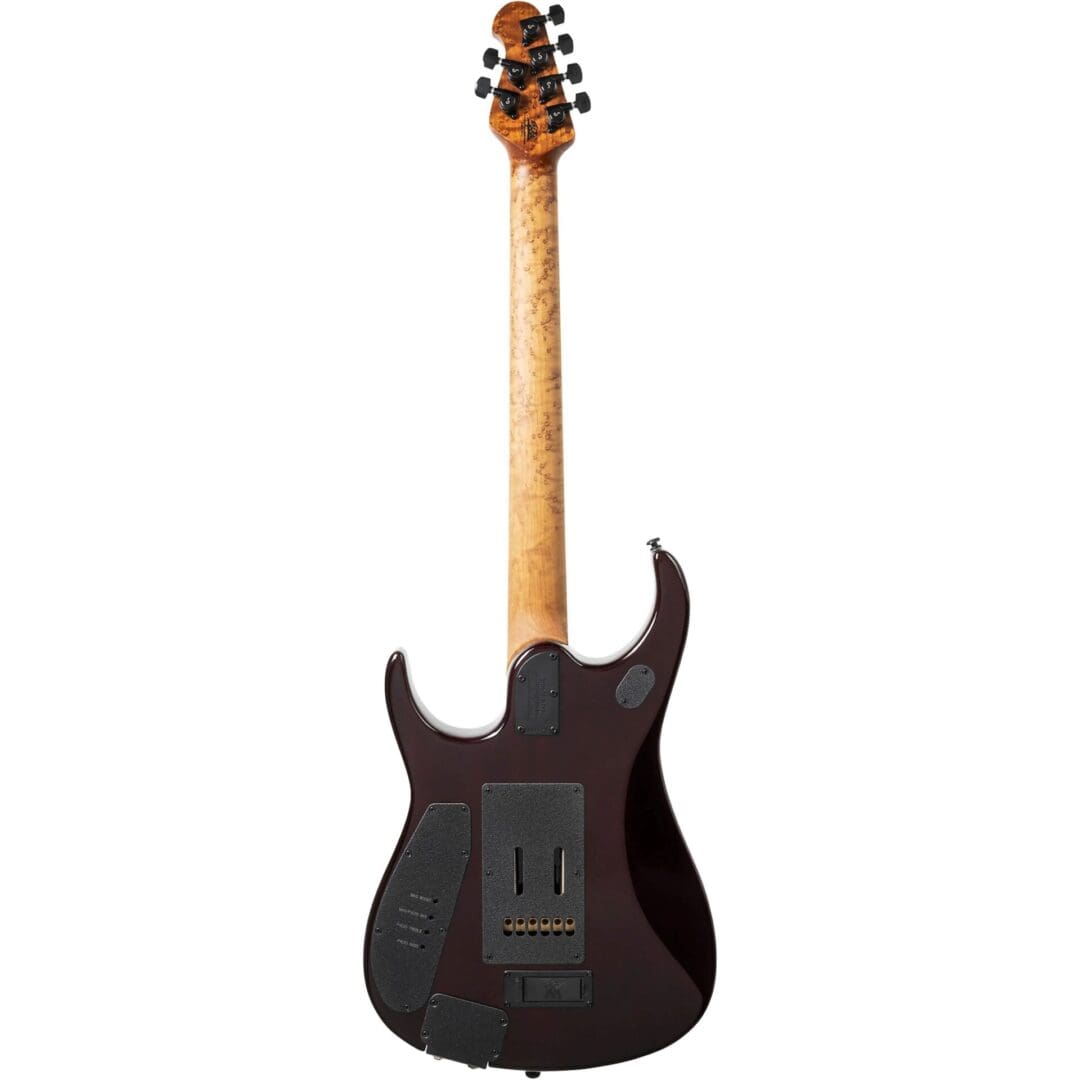 Signature John Petrucci JP15 electric with dual DiMarzio humbuckers. The Ernie Ball JP15 electric guitar features a lightweight okoume body with your choice of a quilted or flame maple top, offered in striking Red Tide, Green Tiger Eye, Ultramarine and Amber Waves finishes. Its roasted figured maple neck and fingerboard deliver a smooth, fast-playing surface enhanced by stainless-steel frets and a hand-rubbed oil and wax finish for natural comfort.