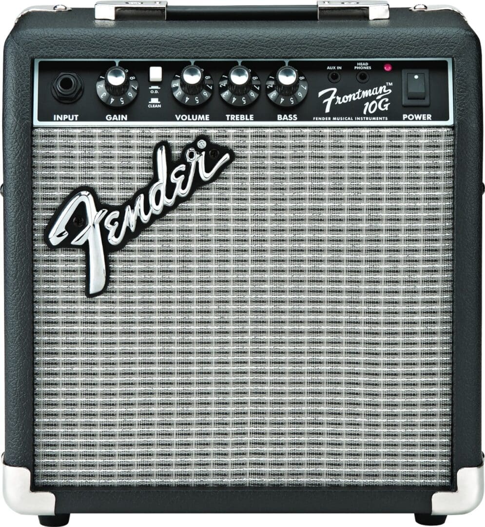 Frontman® amps deliver quality tone at a great price, with custom-voiced built-in overdrive for great tone and the unmistakable Fender® mid-60’s black panel look. The 10-watt Frontman 10G features a 6″ Special Design speaker and a adjustable gain control that rocks guitar tones from tube-emulated overdrive to full-strength ultra-saturated distortion – perfect for blues, metal and the famous Fender clean tone. Closed-back design gives a heavier bass response, 1/8″ input lets you play along with media players, and 1/8″ headphone output is great for silent practice.