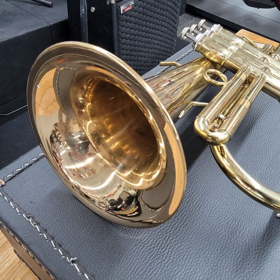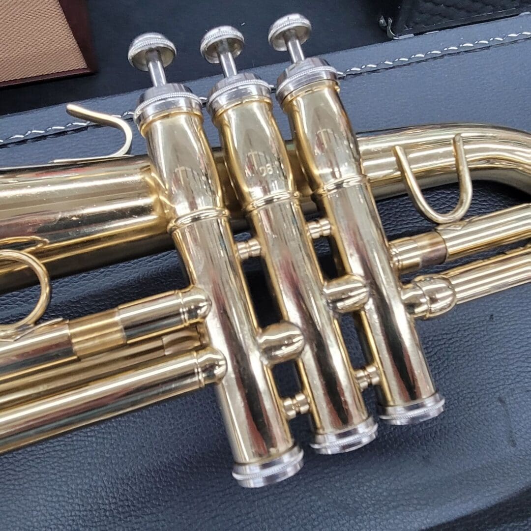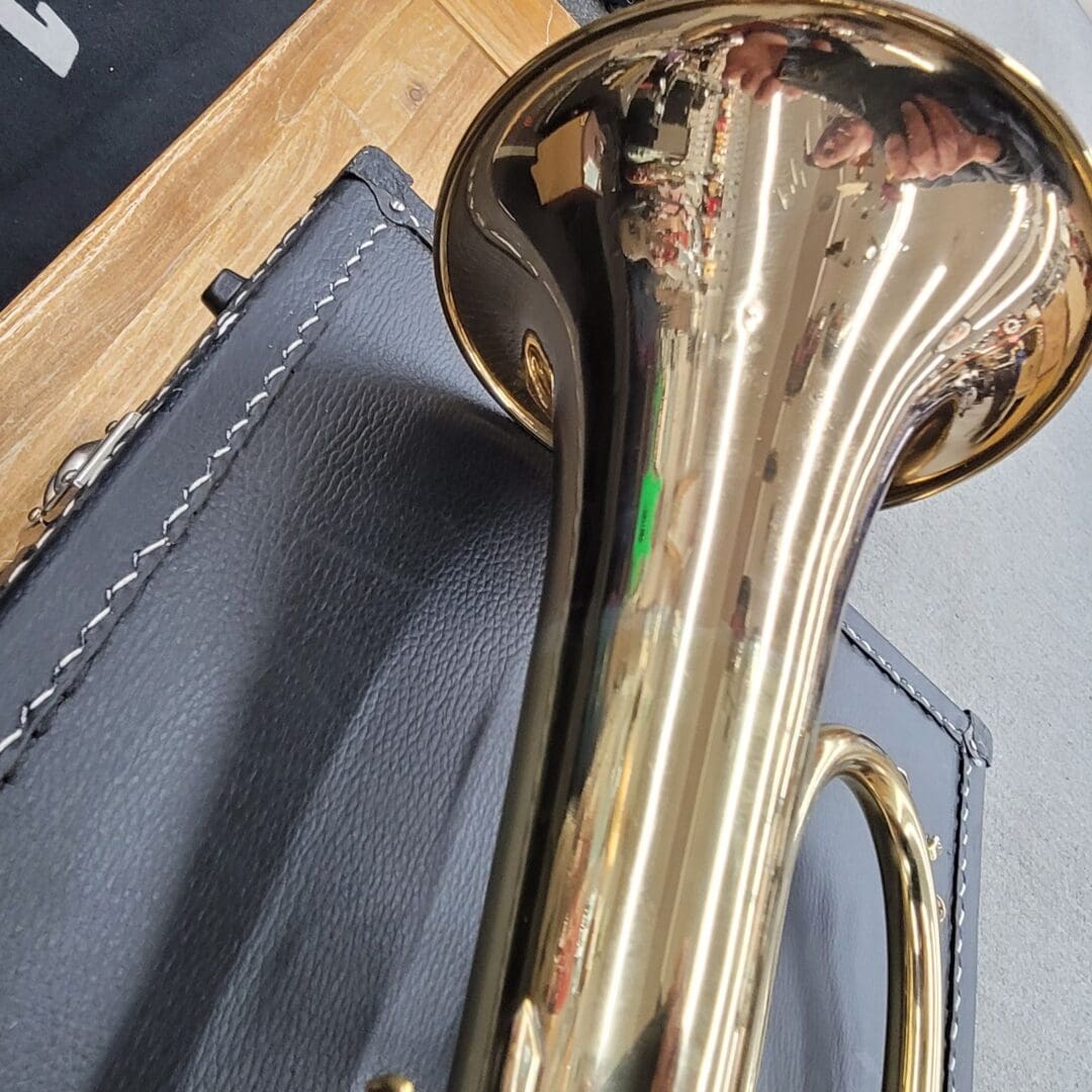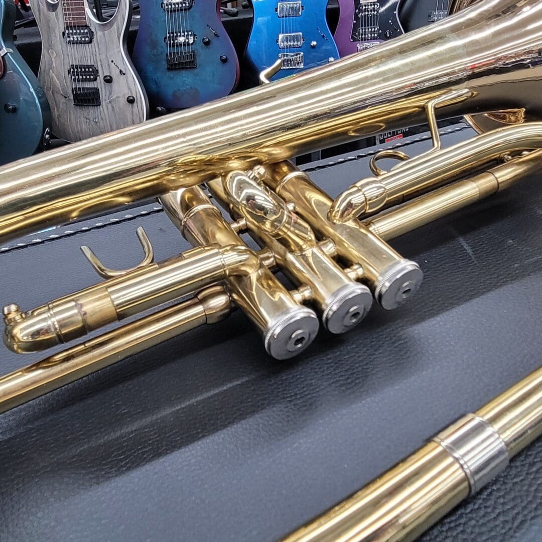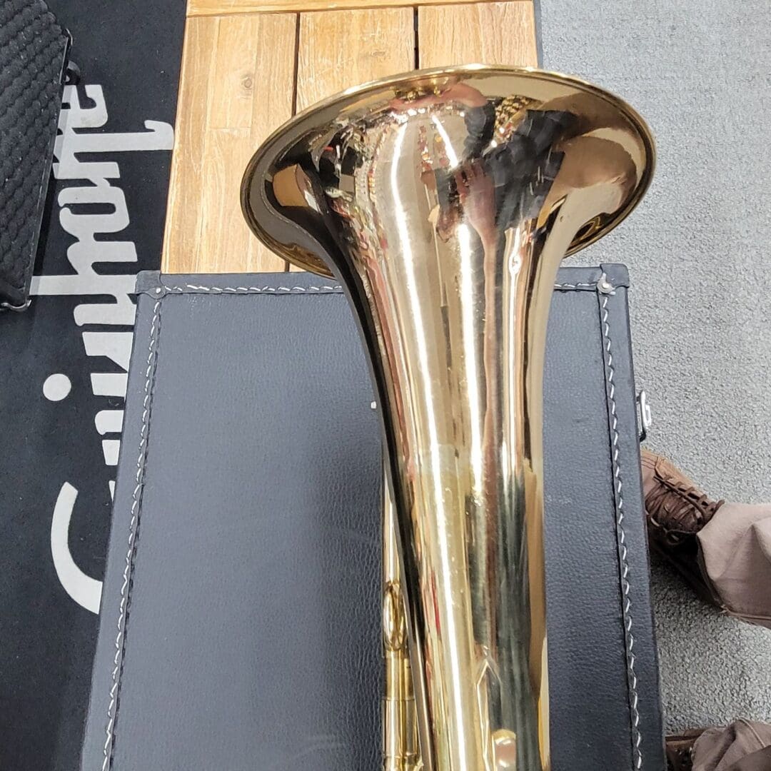 Cosmetically, it shows minor dents and dings that do not affect performance. All slides and valves move smoothly. Two mouthpieces are included, along with the original case.