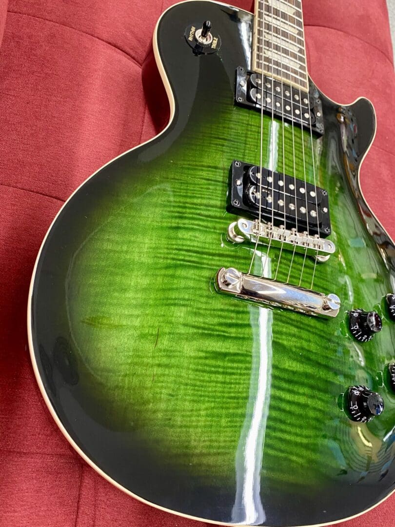 - Body: Solid Mahogany with AAA Figured Maple Top