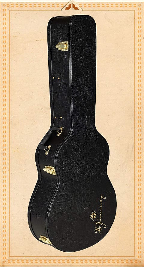 Características: Captador Fishman® RareEarth en la boca con control de volumen Cejuela y puente de hueso verdadero para mayor sustain Barra de ajuste para ajustes fáciles del mástil Incrustación de fases lunares y roseta Sunfire Herrajes negros Incluye un estuche rígido negro