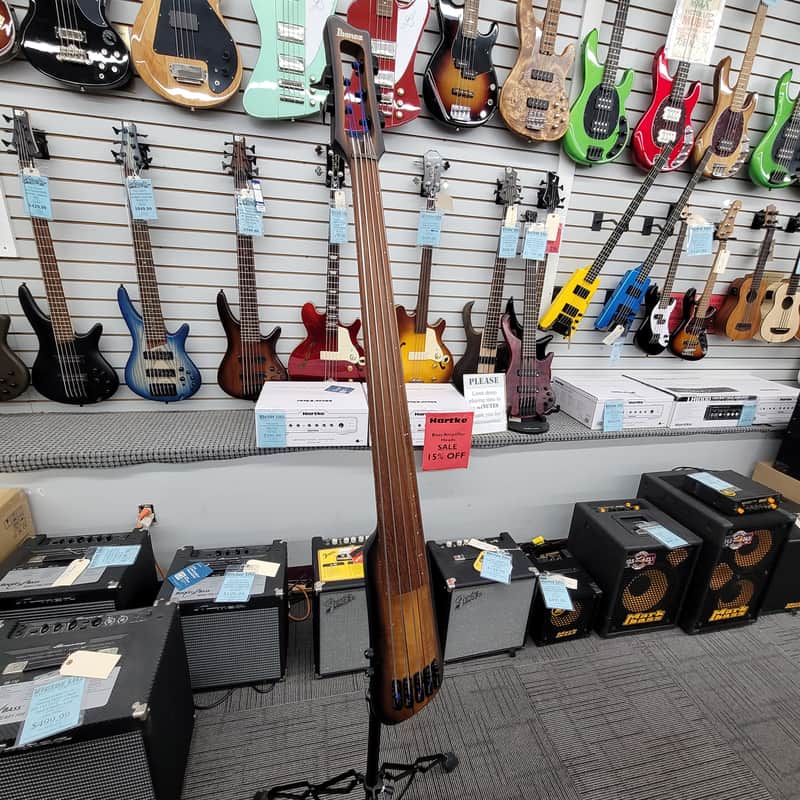 Ibanez UB805 5‑String Electric Upright Bass in excellent playing condition with only light cosmetic wear from home‑studio use. Everything functions perfectly, and it comes with the Ibanez gig bag plus the TAMA Roadpro stand designed specifically for this model. Open to reasonable offers.