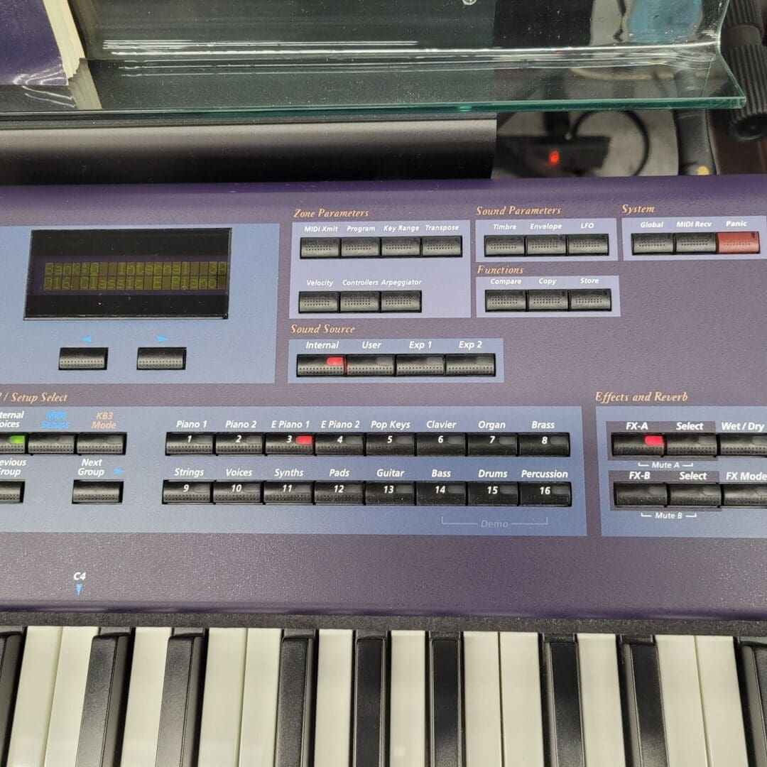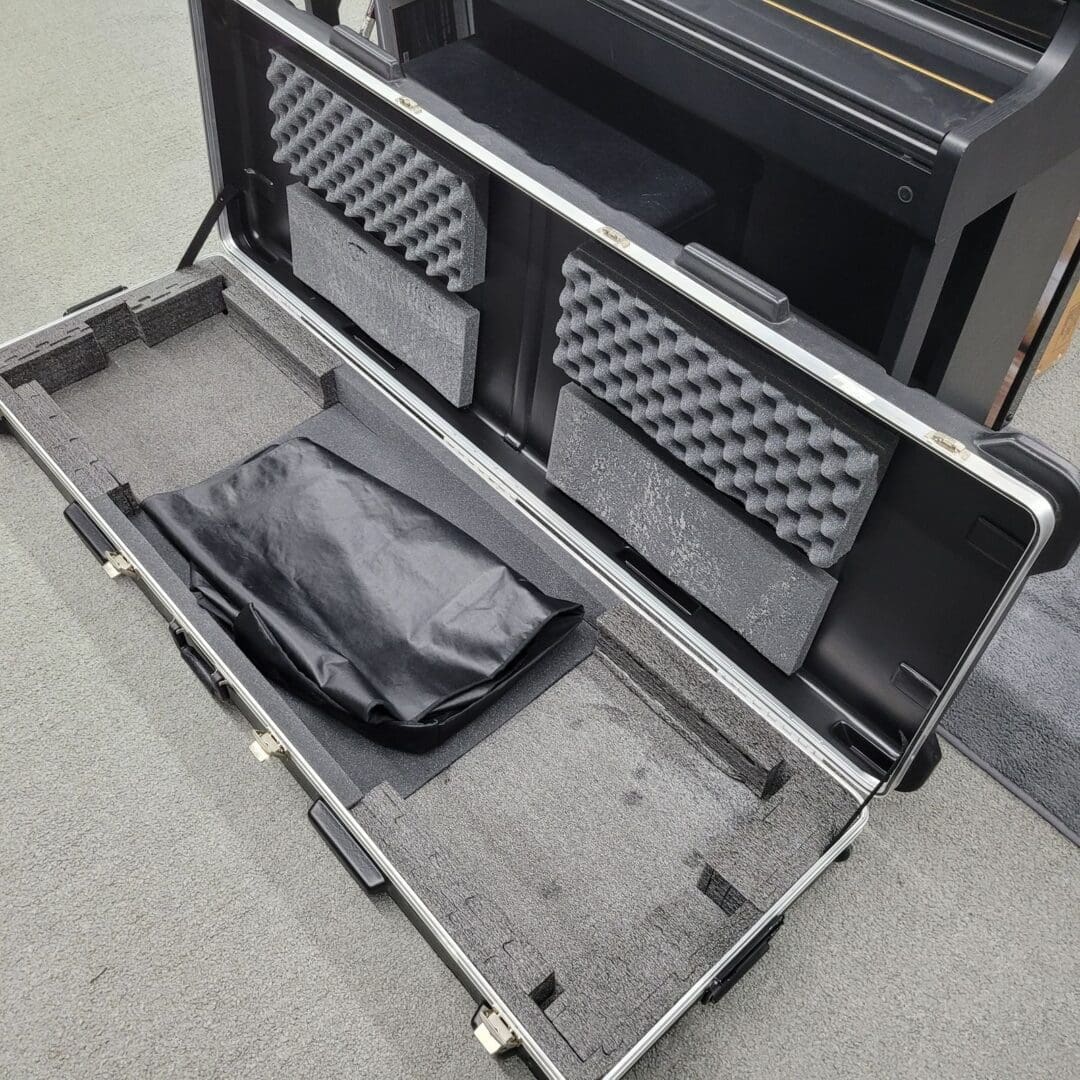 This Kurzweil PC2X 88-Key Digital Stage Piano has been tested and functions well. It is clean and was kept in the case when not in use. The piano is sold with the music rest, owners manual, SKB hard case with rolling wheels, dust cover, and power supply.