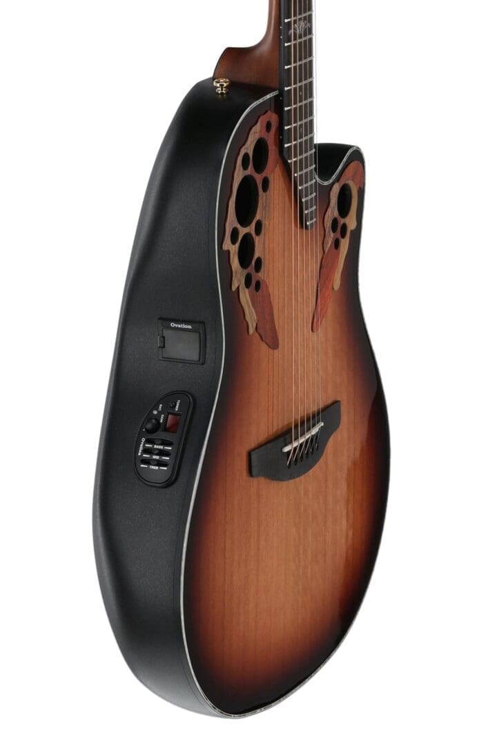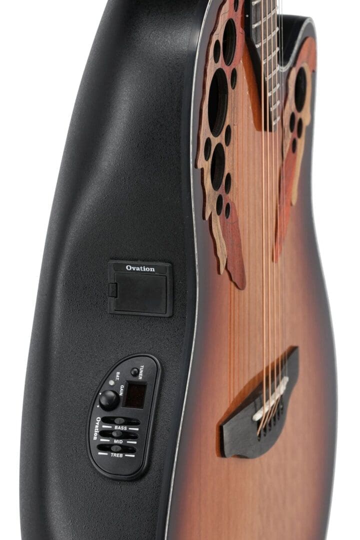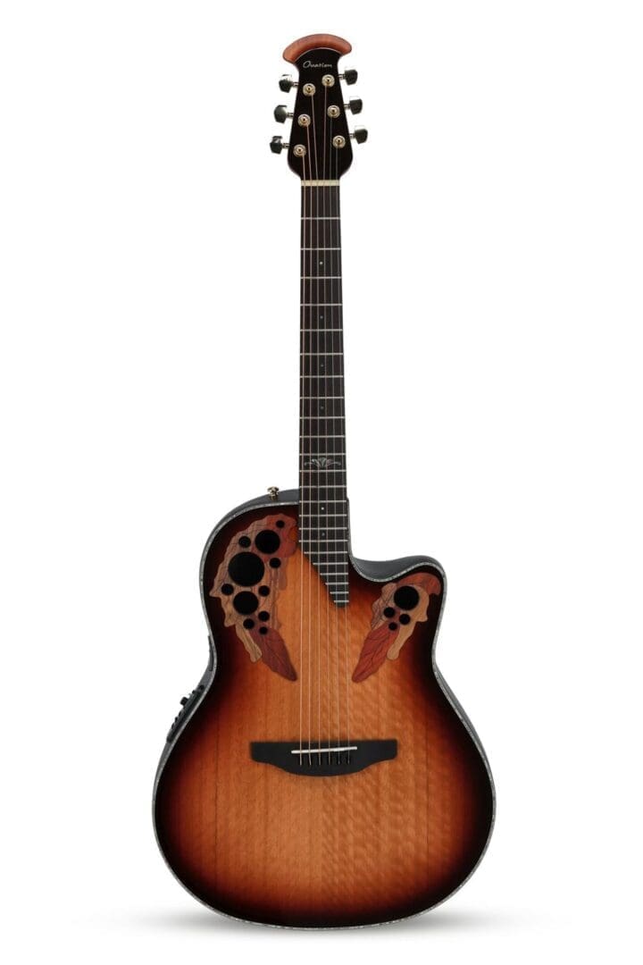 The natural color of this wood work wonderfully well with vintage sunburst finish. This very traditional finish, in combination with the gold-plated tuners and rich abalone ornamentation, is so complementary to the rich sounds of these guitars, making them one of our favorite modern guitars full of the Ovation traditions.