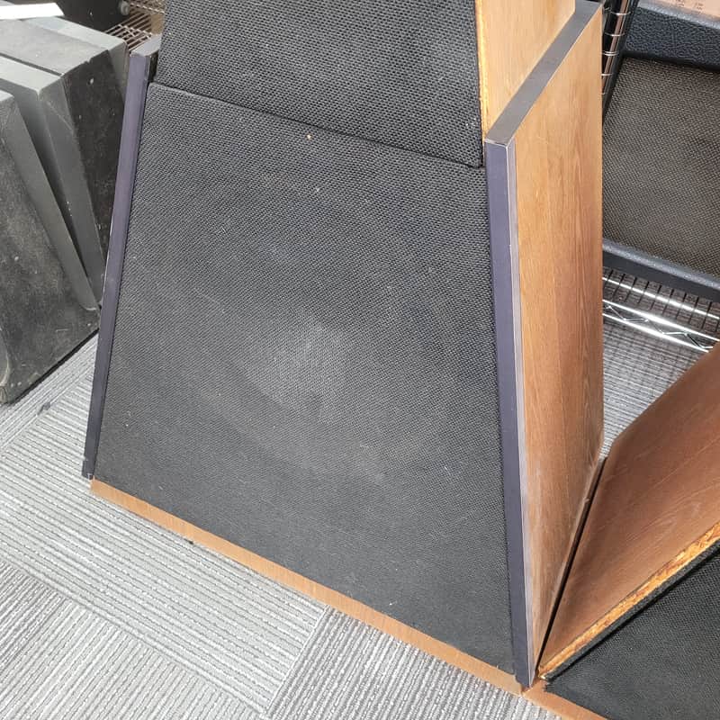 This vintage pair of Dick Sequerra Pyramid Series 2 speakers features W2 woofers, 2 mid‑range drivers, and T‑1 tweeters. The original matching speaker bases are included.