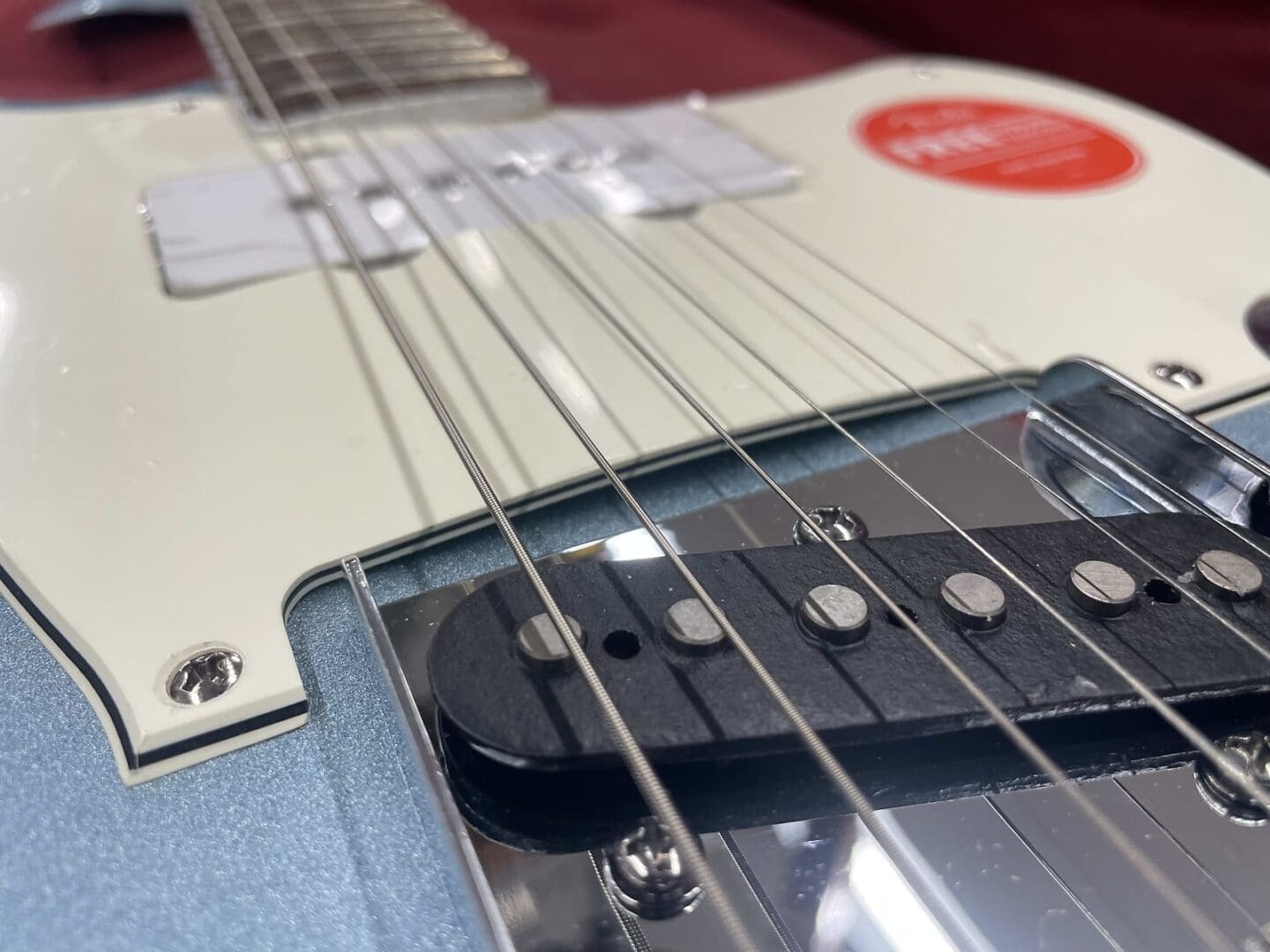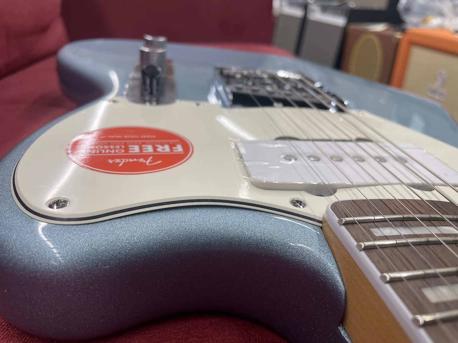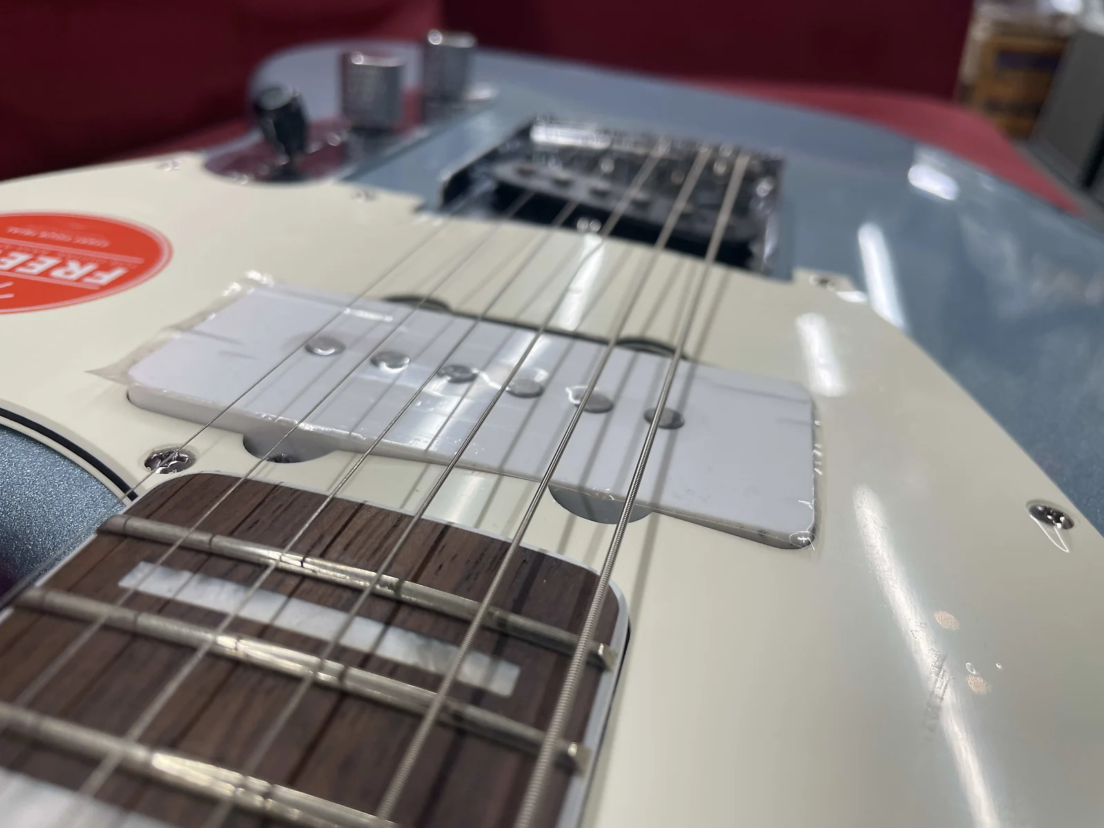 Now, let’s talk condition. Yes, this guitar is brand new and unplayed. However, it does have a couple of minor cosmetic issues. First, the pickguard has a slight bubble in the middle (check the photos). Second, there’s a small finish mark on the body’s front. Neither affects playability or sound in any way.