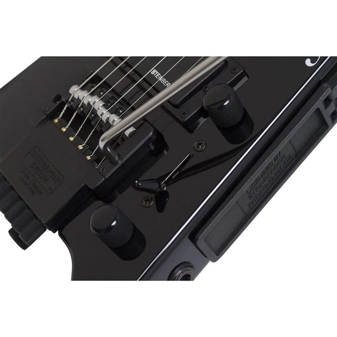 The Steinberger GT-PRO is powered by Steinberger’s versatile humbucker pickups in the neck (HB-2) and bridge (HB-1) positions along with full-range Steinberger SC-1 single coil pick up in the middle position. Controls include Master Volume, Master Control, and a 5-way pickup selector.